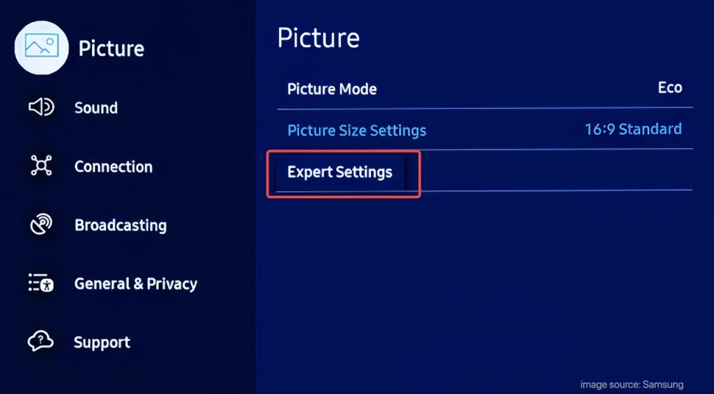 Step 1. Navigate to Settings > Picture > Expert Settings.