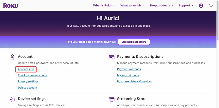 Nota: If you've forgotten your password, you can request a password reset email from the Account Information page in your Roku account. To check which email you used to set up your Roku account.