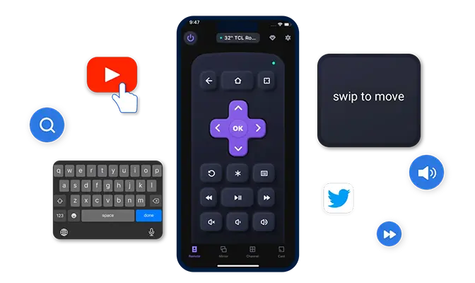- Basic TV Controls: Take full control of your Roku device with the universal Roku remote app, like powering your Roku device on and off, adjusting the volume, and switching channels.