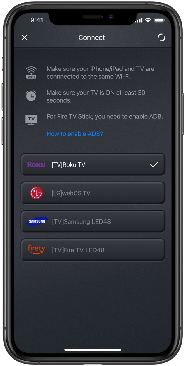 O processo de conexão é simples e amigável ao usuário. Impulsionado pela tecnologia de detecção automática de dispositivos, o aplicativo irá buscar automaticamente por TVs Vizio disponíveis na mesma rede Wi-Fi.