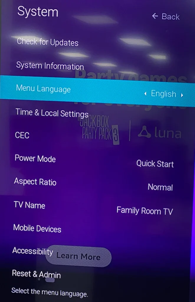 Still receive the message, saying SmartCast is loading we'll be right back? Try refreshing your SmartCast Home by clearing the cache. In this case, you don't need to locate any cache-related options, but just press the Menu or Settings button on the remote, then navigate to All Settings > System > MenuLanguage, and choose Spanish or French.