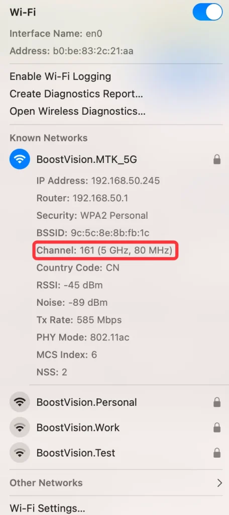 Step 3. Check the connected network. If it is different from the network your iOS device is connected to, then make the network connection the same on both devices.